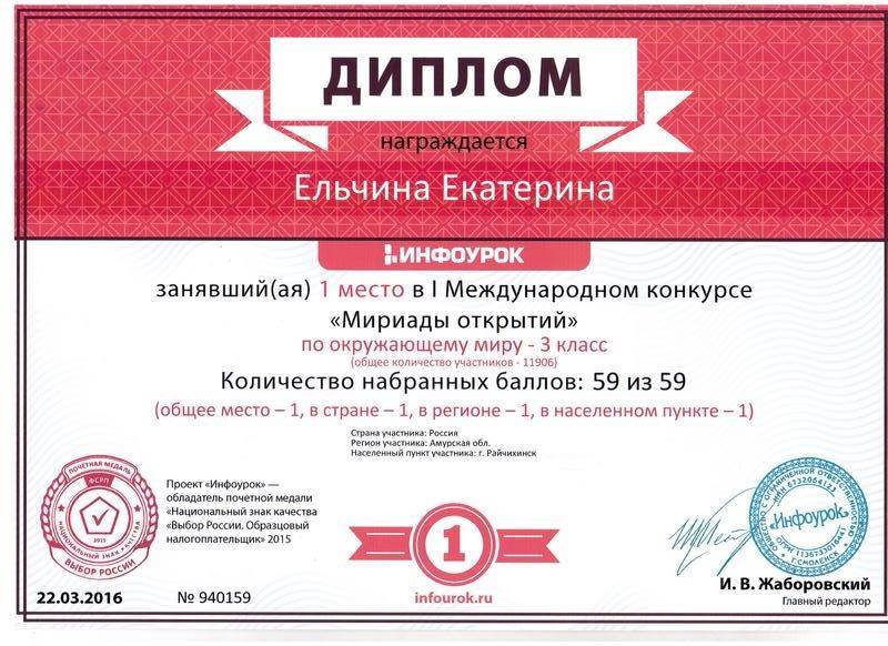 1-е место в Международном конкурсе "Мириады открытий"
