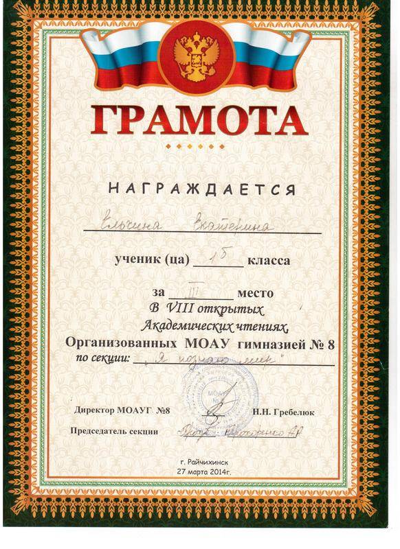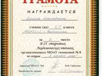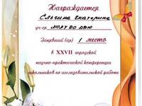1-е место в 27-й городской научно-практической конференции школьников по исследовательской работе