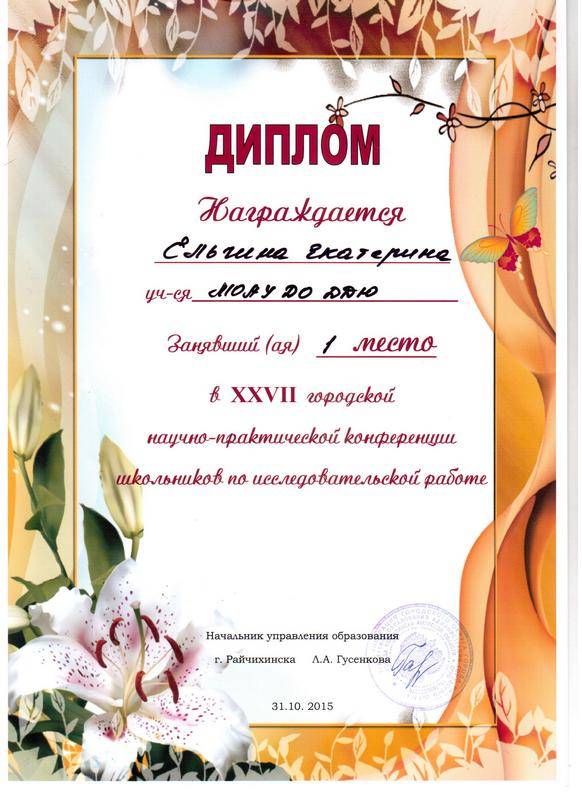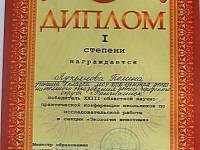 Победитель (1 место)областной 23 научно - практической конференции школьников по исследовател...