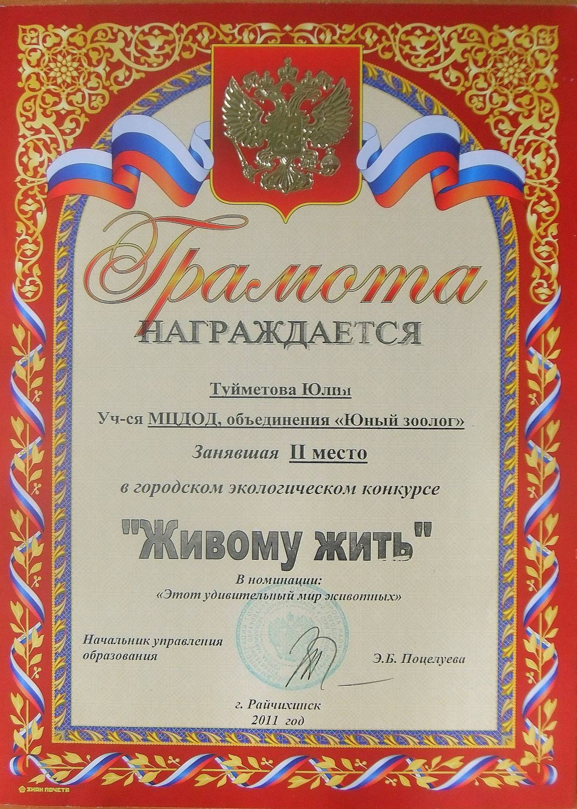 2 место в городском конкурсе "Живому жить"