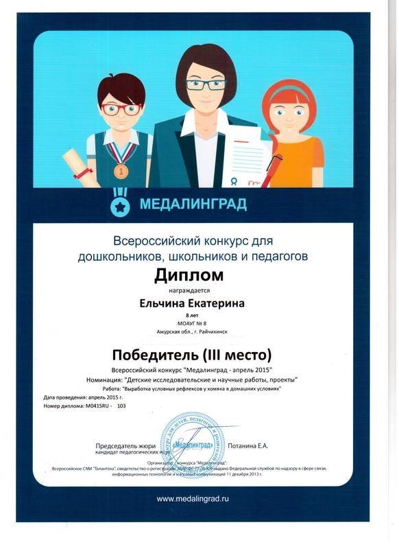 3-е место Всероссийский конкурс "Медалинград", номинация "Детские исследовательские проекты"