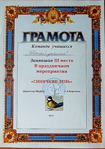 3 место в городском мероприятии "Синичкин день"