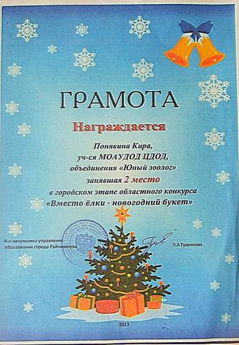 2 место в городском конкурсе "Вместо елки - новогодний букет"