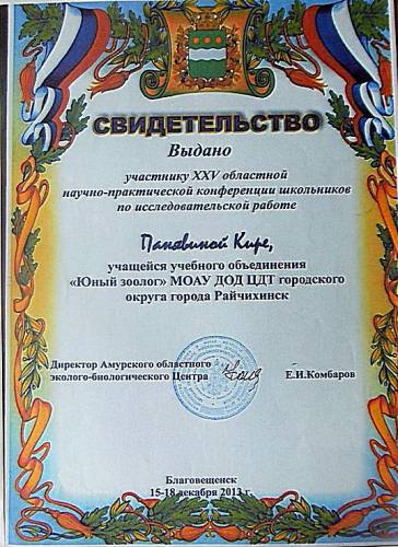 ФотоальбомыСвидетельствоПанявиной КиреУчастие в 25 областной научно - практической конференции