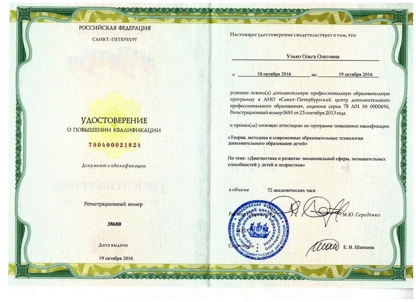 Удостоверение о повышении квалификации