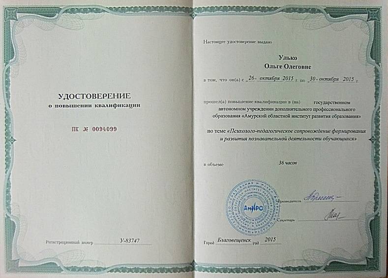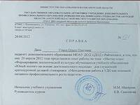 С 26 октября 2015 по 30 октября 2015 года прошла курсы в государственном автономном учреждении дополнительного профес...