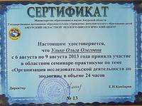 С 6 по 9 августа 2013 года приняла участие в областном семинаре-практикуме по теме "Организация исследовательской дея...