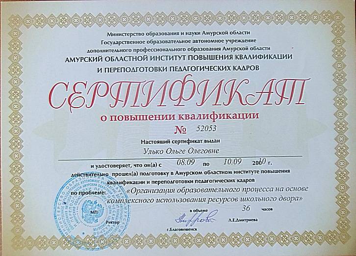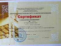 С 08.09.2010 по 10.09.2010 прошла подготовку в Амурском областном институте повышения квалификации и переподготовки п...