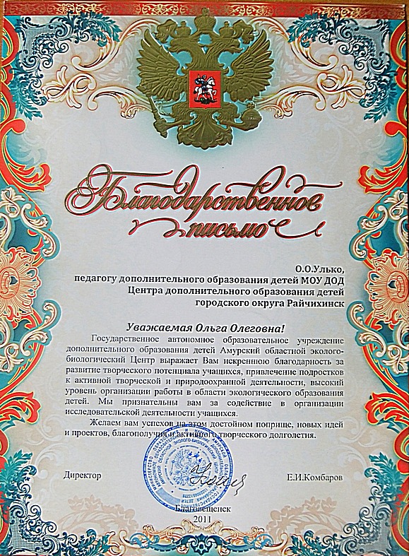Благодарственное письмо
