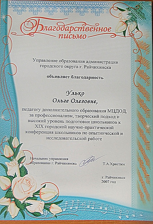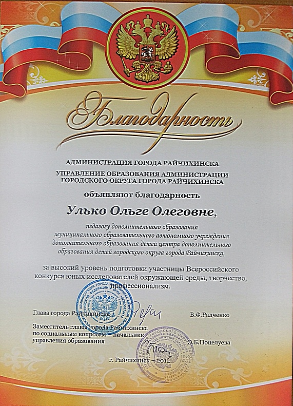 За высокий уровень подготовки участницы Всероссийского конкурса юных исследователей