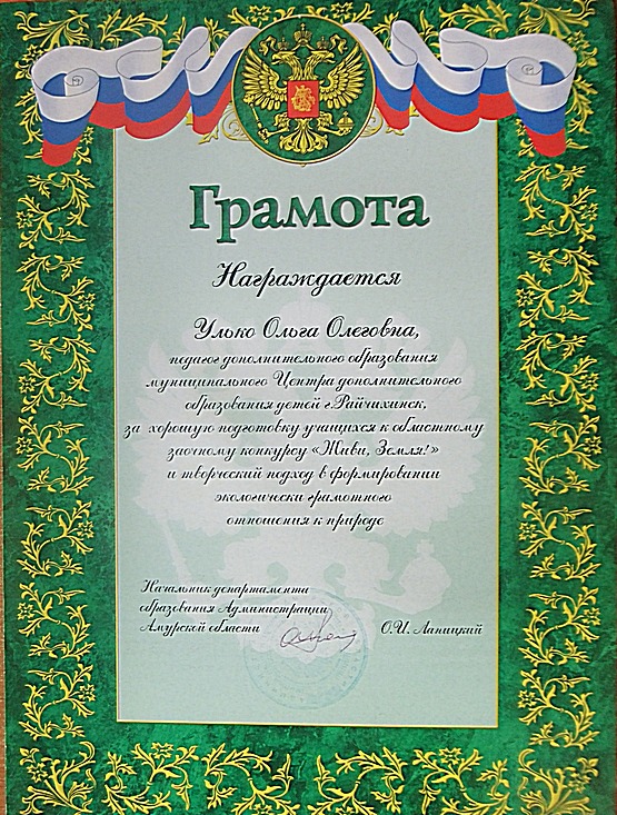 За хорошую подготовку учащихся к заочному конкурсу "Живи Земля"