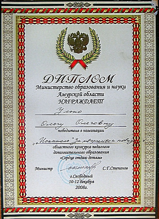 Областной конкурс педагогов дополнительного образования "Сердце отдаю детям". Победитель в номинации "Искатель"