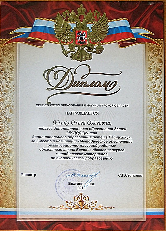 2 место в конкурсе методических материалов; номинация "Методическое обеспечение организационно - массовой работы"