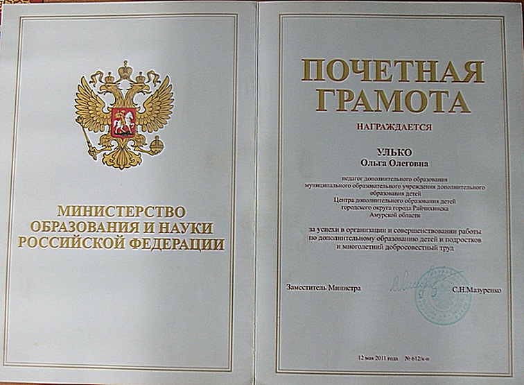 За успехи в организации и совершенствовании работы по дополнительному образованию детей