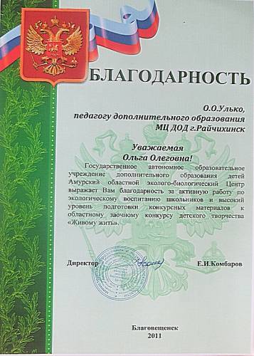 ФотоальбомыБлагодарностьЗа активную работу по экологическому воспитанию
