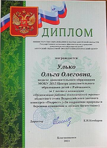 ФотоальбомыДиплом1 место Организация работы экологической тропы