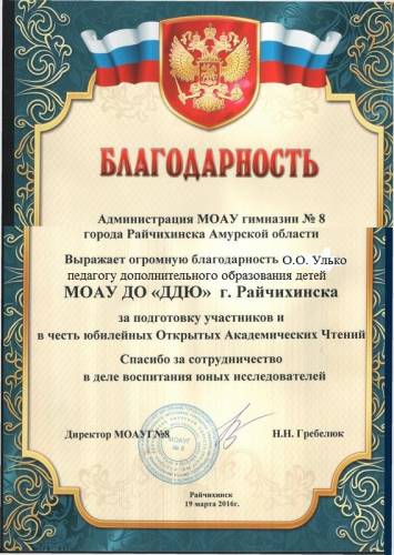 ФотоальбомыБлагодарностьЗа подготовку участников в честь юбилейных Открытых Академических Чтений