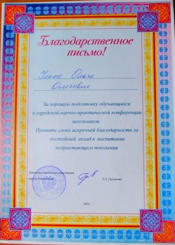 ФотоальбомыБлагодарственное письмоЗа подготовку к городской научно практической конференции