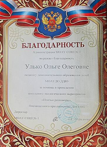 ФотоальбомыГрамотаЗа помощь в проведении школьного экологического мероприятия "Птичьи разговоры"